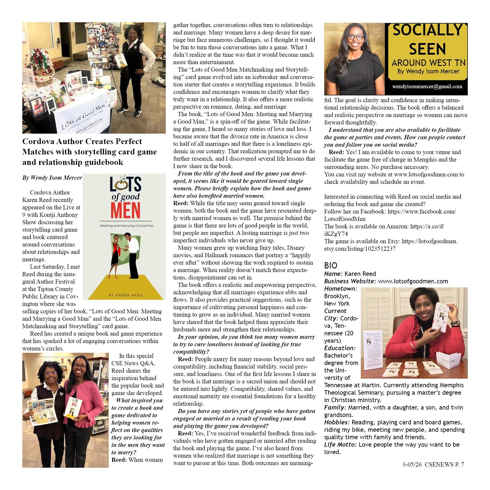 I’m excited to share that Lots of Good Men is featured in a local newspaper! Take a look at the Socially Seen Around West TN column by Wendy Isom Mercer to learn more about the Lots of Good Men card game and book.